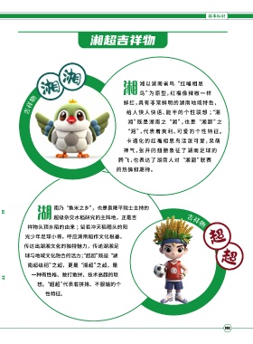 字,取意“三高四新”和“三湘四水”, 吉祥物 给人快人快语、能干的个性联想 ;“湘