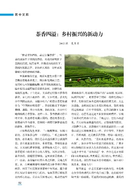圄。亲自跟在茶农身后,手挎竹篮,穿梭在茶垄 山绕”。返乡青年为乡村振兴添砖加瓦,广袤乡
