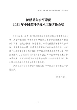 2021年中国老科学技术工作者协会奖